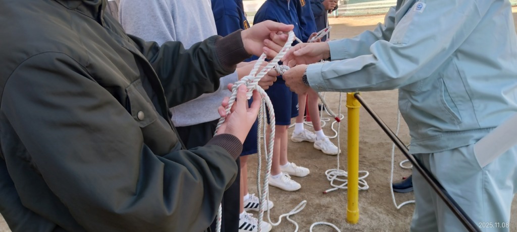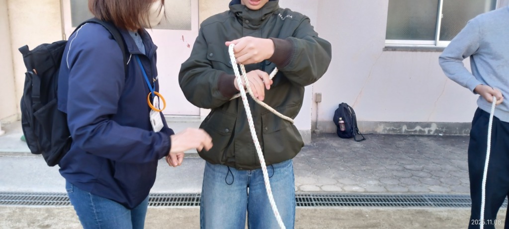 続いて、被災現場で役立つロープワークに挑戦。