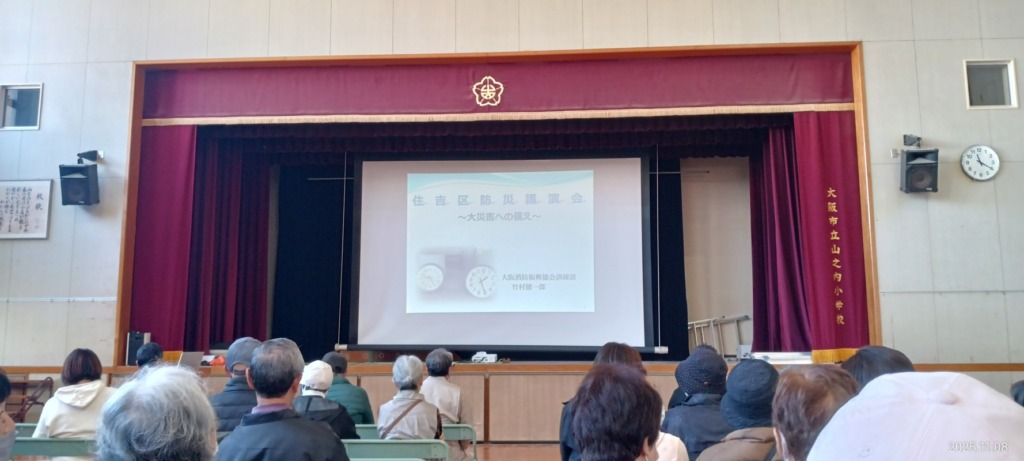 11月8日、本校が所在する住吉区の総合防災訓練が行われました。来年、2026年は東日本大震災から15年という節目の年を迎えますが、本校で学ぶ園児・児童・生徒の多くは、大規模災害で実際に被災した経験はありません。そのため、「災害」はどこか遠い出来事に感じられがちです。