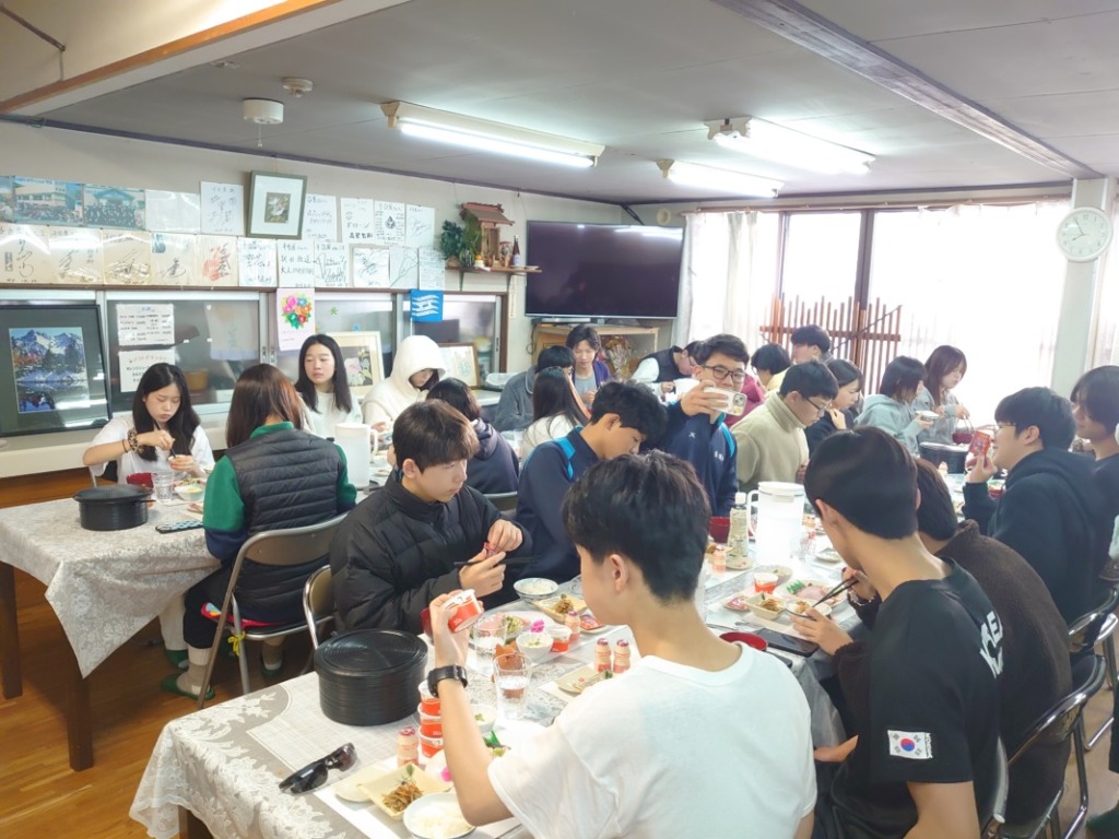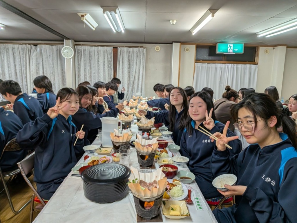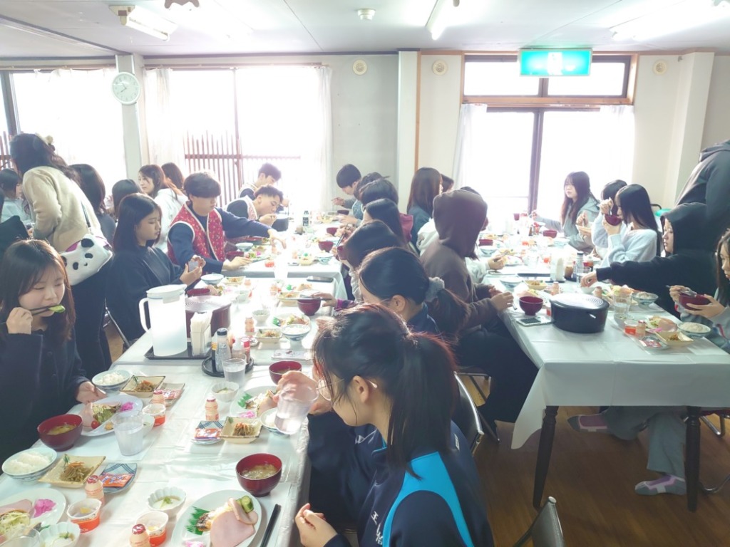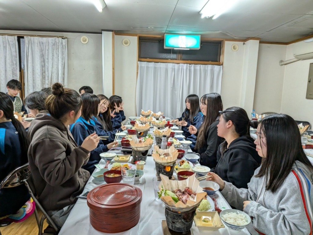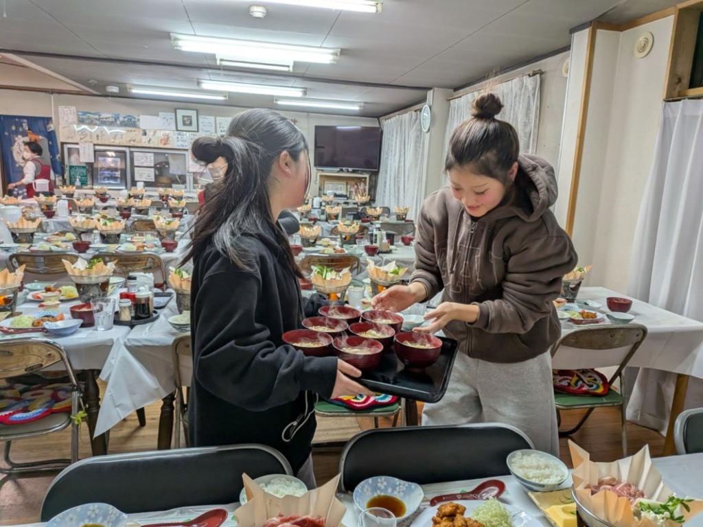 少しでも早くみんなで食事をとろうと、旅館の方の配膳を手伝う姿も見られました。さすが建国生。