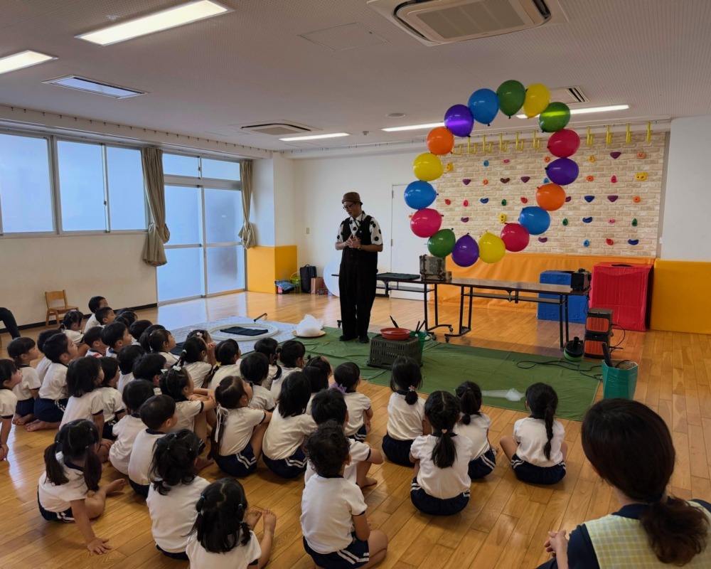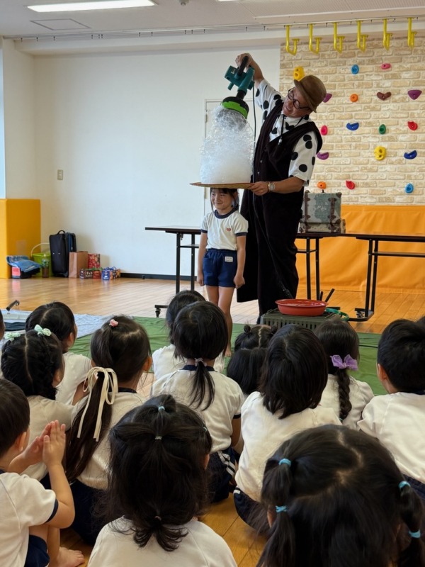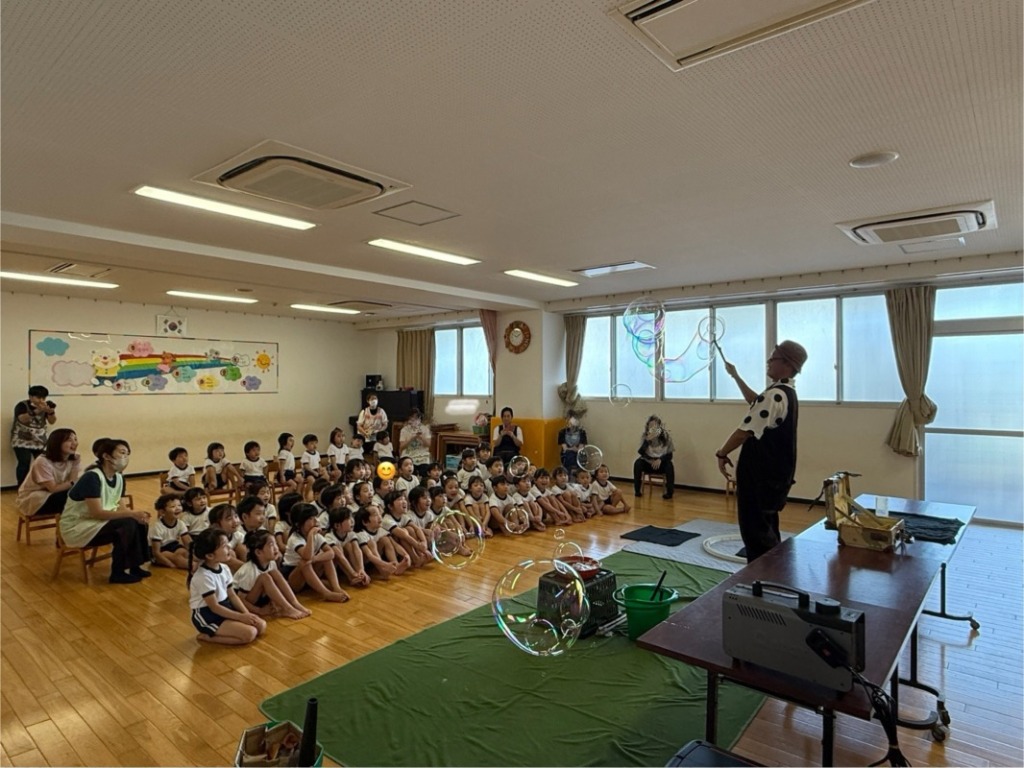 9月19日(金)幼稚園にシャボン玉おじさんが来て下さり、「シャボン玉ショー」を見ました。