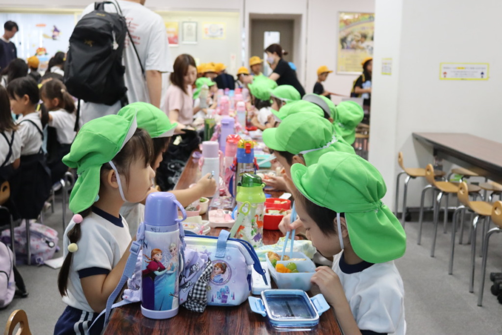 いっぱい遊んだあとは、お弁当の時間です。 保護者の皆様、朝早くからのお弁当ご準備ありがとうございました。 ふたを開けた瞬間に「わぁ!おいしそう!」と笑顔になり、友だちと楽しそうに食べていました。