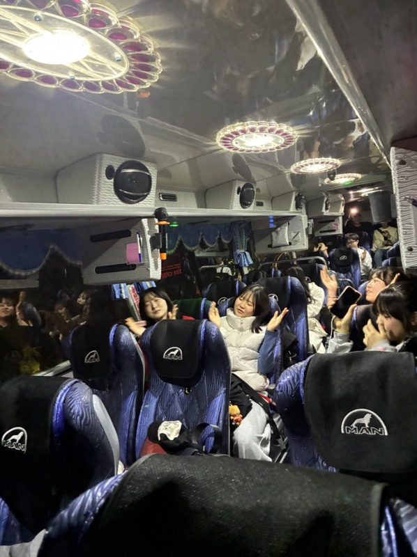 バスでの移動も楽しんで、夕食はみんなで잘 먹겠습니다!(いただきます!)
