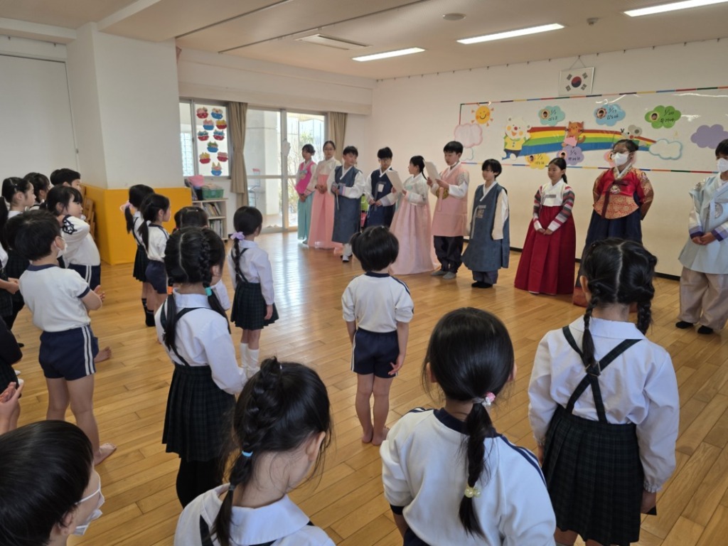 2026年1月27日(火)に例年より少し早いですが、建国小学校の児童会の子どもたちとチンダルレ班(4歳児)、ケナリ班(5歳児)の子どもたちと一緒に旧正月行事の「幼小交流会」がありました。