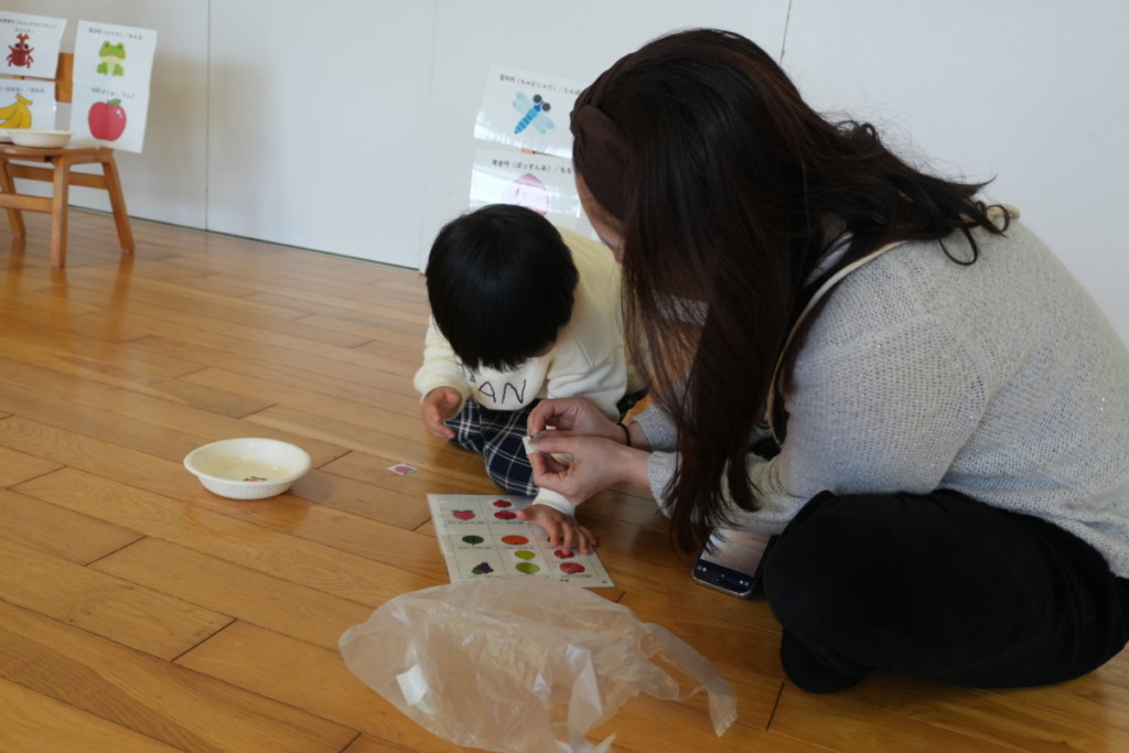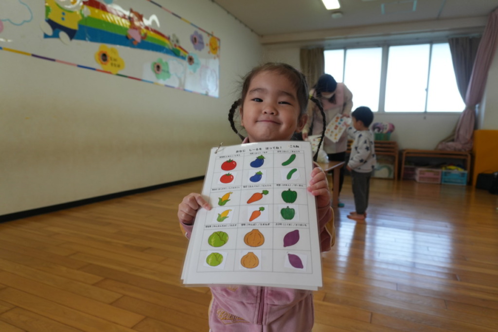先生や保護者のみなさんと、「これはいちご、韓国語ではタルギだね~」と言いながら、シールを集めました。