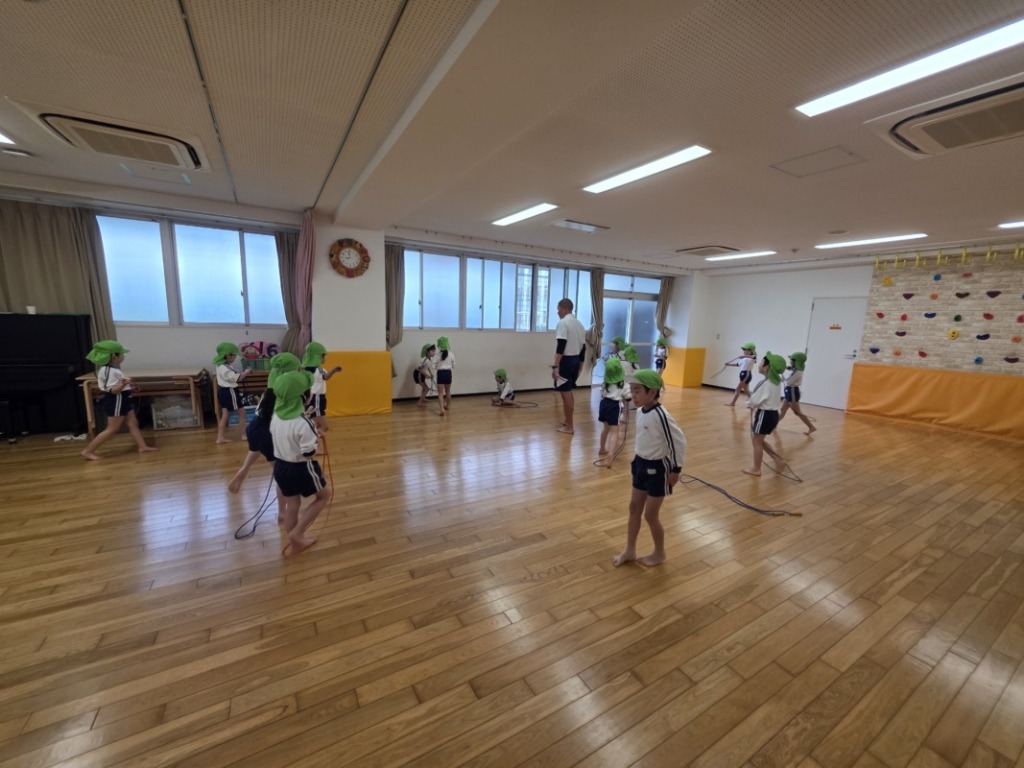 チンダルレ班(4歳児)は、少しずつ跳べる回数が増えてきて、100回以上跳べる子どももいます。