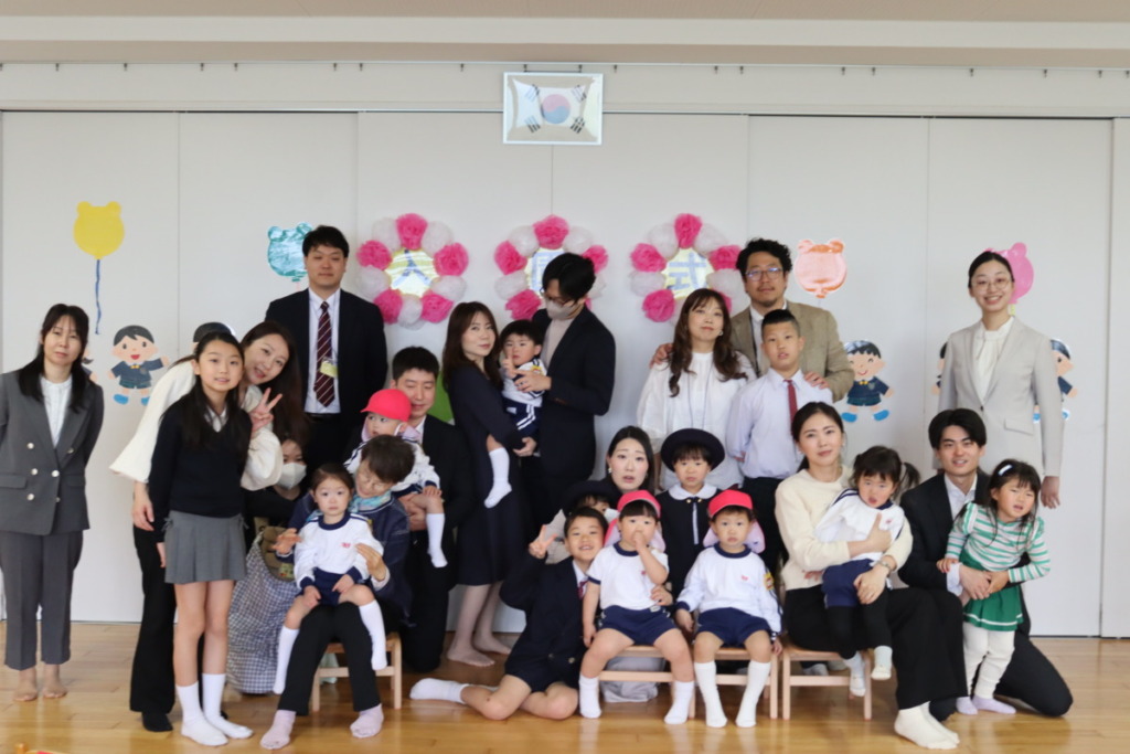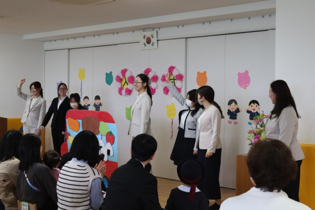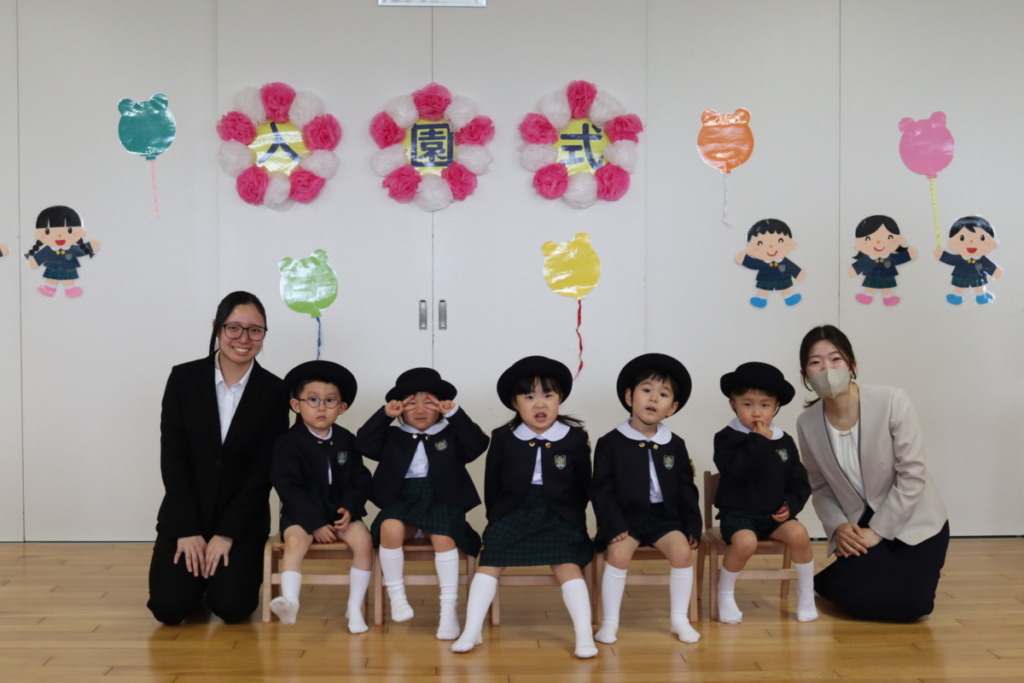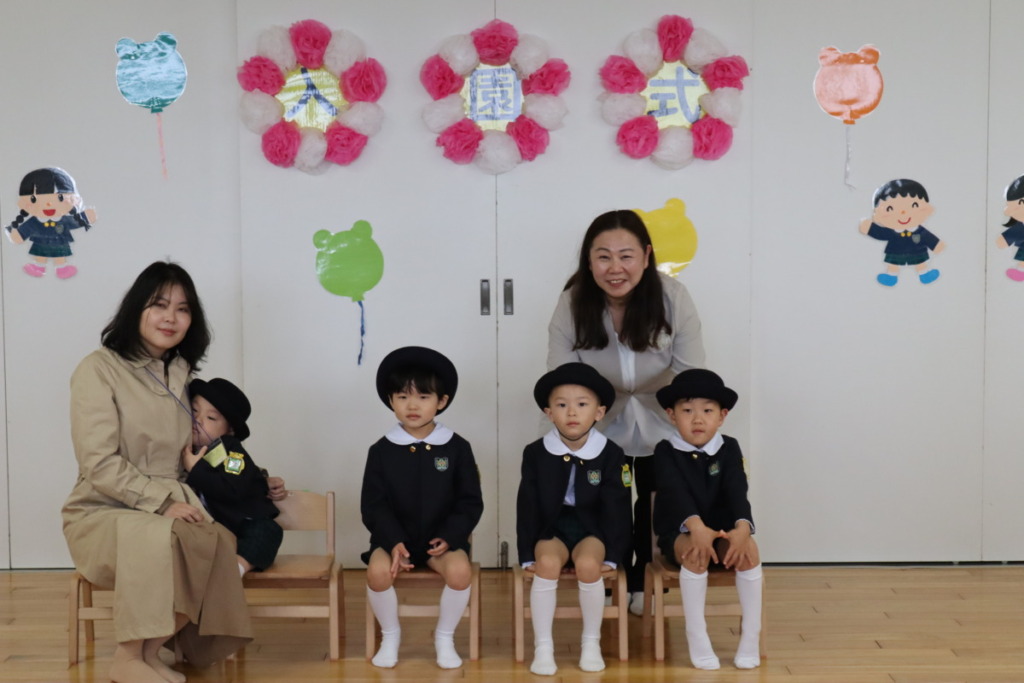入園式では、園長先生からのお話を聞いたり、教職員の紹介、PTA会長様からお祝いの言葉をいただいたりし、先生たちからお歌のプレゼントもありました。