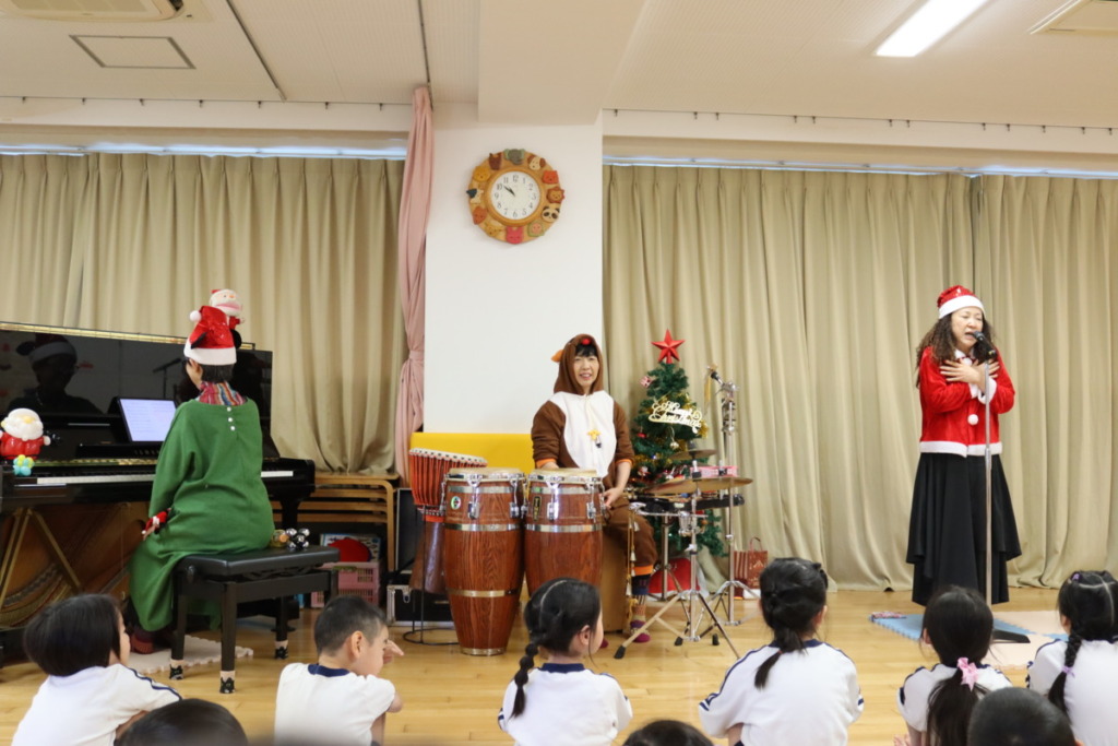 今日は、ミーモ(歌手)・あゆこさん(パーカッション)・まゆみさん(ピアノ)による、クリスマスコンサートがありました!!