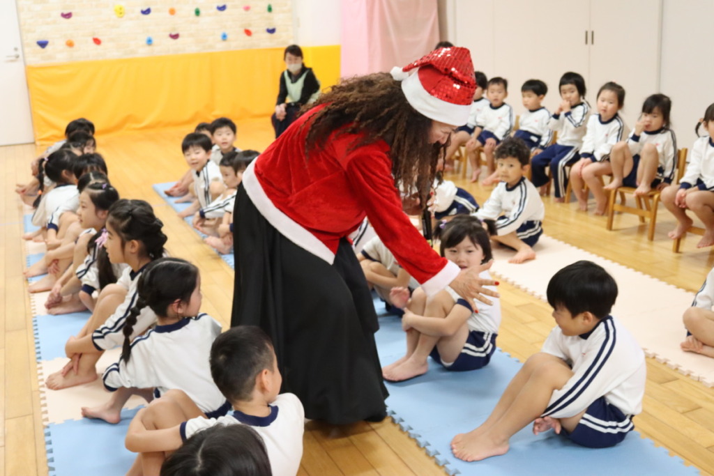 最後に、ミーモからクリスマスカードのプレゼントを一人ひとり手渡してもらって、照れながらも「Thank You]とお礼を言う子どもたちが、かわいらしかったです♡カードは「空白のところを自分たちで描き加えて楽しんでね」と言って受け取りました。ぜひ、お家でご活用ください!