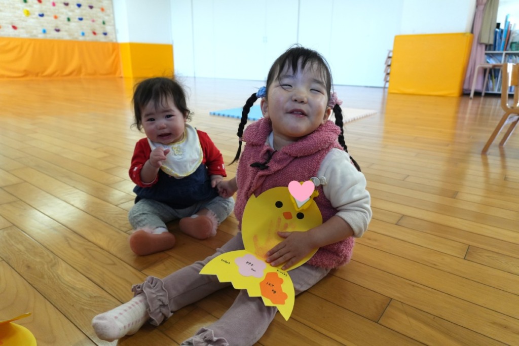 手形を取り、身長と体重を測ってかわいいひよこを作りました♪